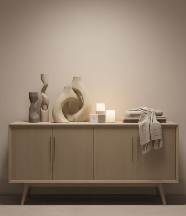 متاحة في نهجان أنيقان – تأثير رخام بيج ناعم وأسود مطفي بنسيج مميز – تتناغم هذه القطعة الديكورية متعددة الاستخدامات بسلاسة مع مختلف أنماط التصميم الداخلي، من الاسكندنافي إلى الجابندي وما يليه. شكلها الأنيق يجعلها مكملاً مثالياً لطاولات الاستقبال الذكية أو خزائن الجانب أو الرفوف، مما يضيف لمسة من الفخامة المصممة دون إرباك المساحة.