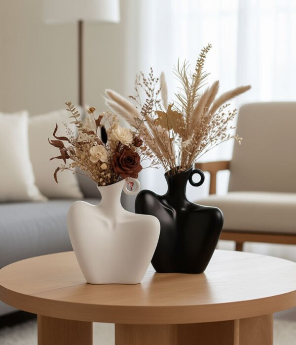 Elevate Your Modern Home with Our Sculptural Ceramic Vases – Black & White Set