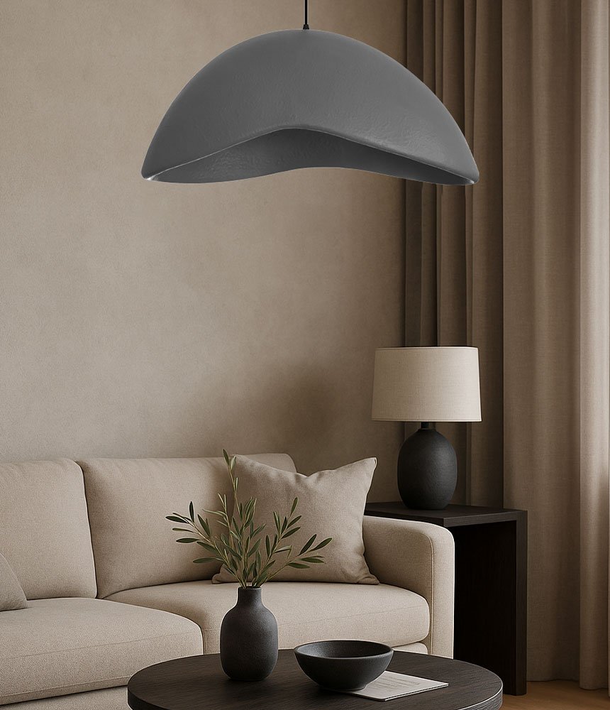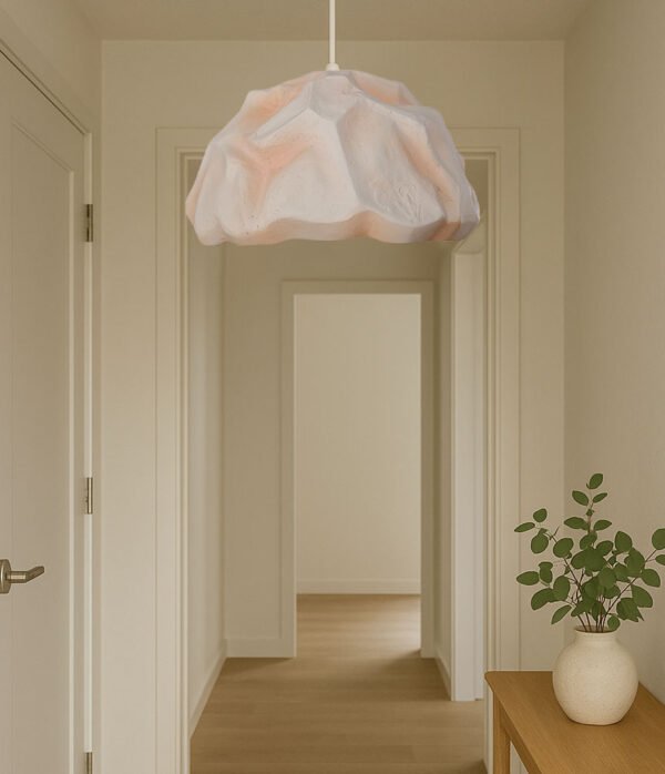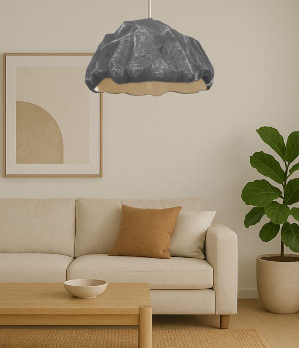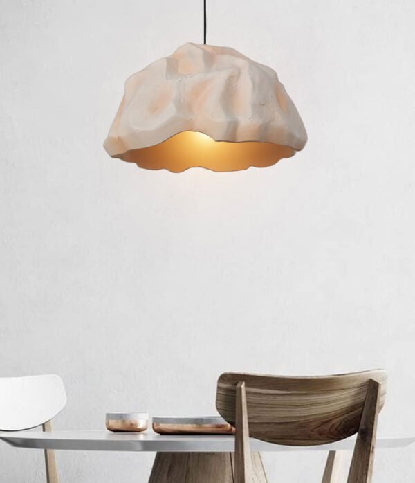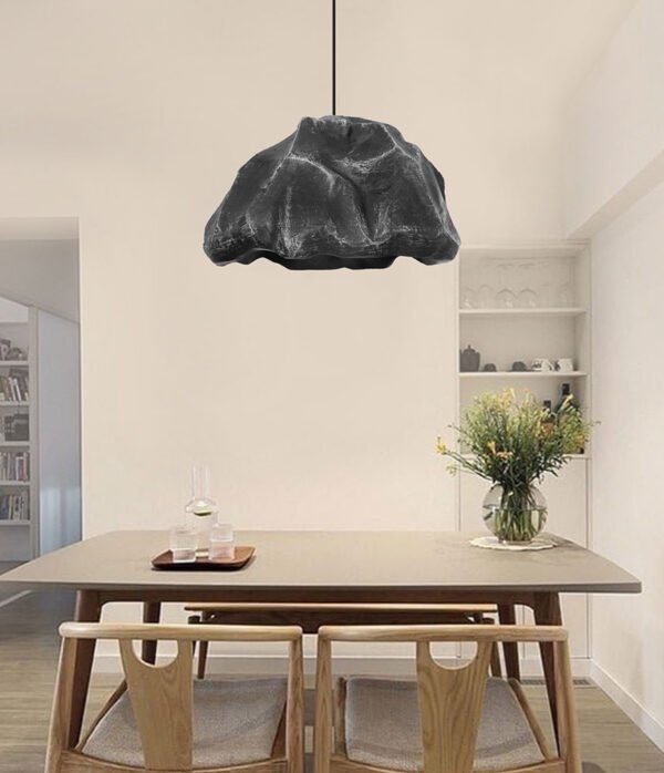 Transform any room into a serene sanctuary with our stunning Organic Fiberglass Pendant Light. Meticulously crafted from durable and lightweight fiberglass, this unique ceiling fixture boasts a captivating, sculptural form that mimics the natural contours of a smooth stone or cloud. Its textured surface creates a mesmerizing play of light and shadow, casting a warm, ambient glow that enhances the modern aesthetic of your living room, dining area, entryway, or bedroom.